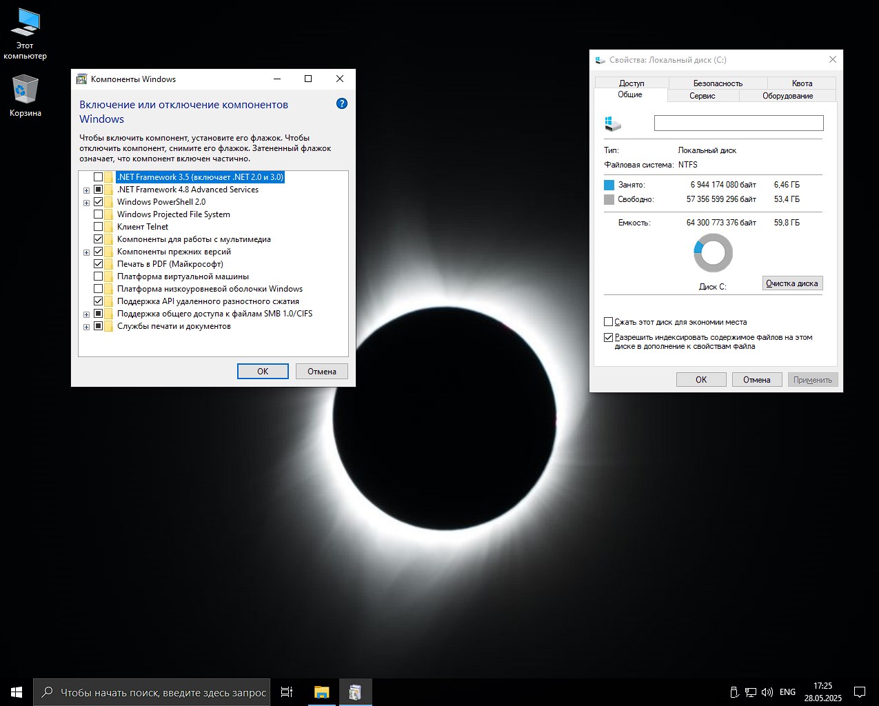 - Оптимизация под SSD: отключён режим гибернации и настроены параметры энергосбережения