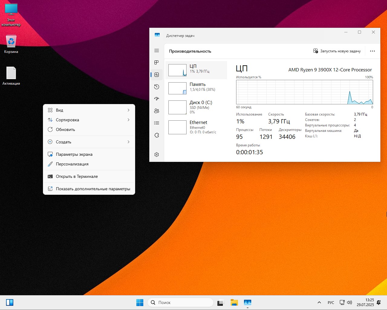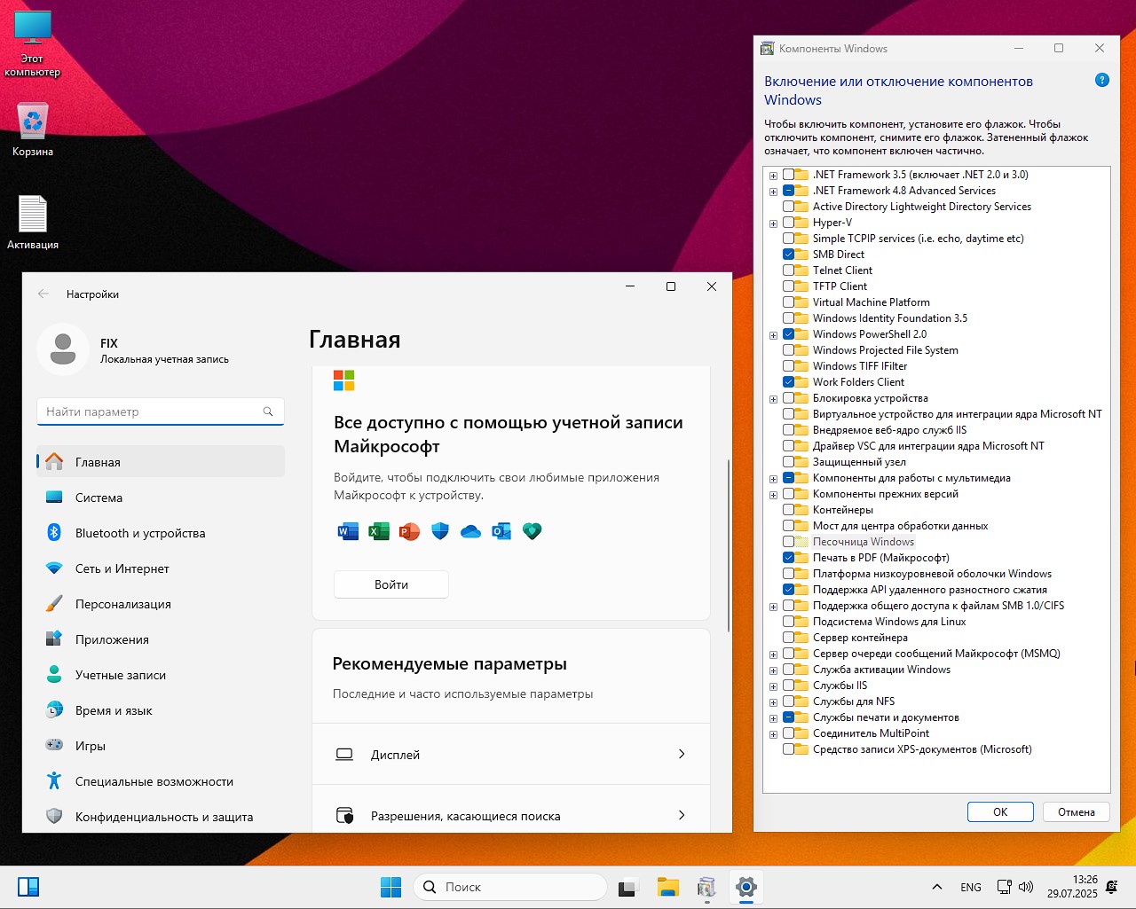 После завершения установки пользователь попадает в готовую к использованию среду. Черный экран с логотипом сменяется рабочим столом, где уже применены все оптимизации. Потребление оперативной памяти составляет около 1.5 Гб, количество фоновых процессов — около сотни, что соответствует нормальному уровню для полноценной системы. Все базовые компоненты, необходимые для работы и развлечений — калькулятор, контекстное меню, меню «Пуск» — остались без изменений. Магазин Microsoft Store можно восстановить при необходимости через команду wsreset -i. Для повышения безопасности отключён Windows Defender и SmartScreen, но пользователь может установить сторонний антивирус или использовать песочницу. Обновления системы доступны в ручном режиме, что позволяет контролировать процесс и избегать нежелательных изменений. Сборка идеально подходит для повседневного использования: серфинга, просмотра видео, работы с документами, игр и стриминга.