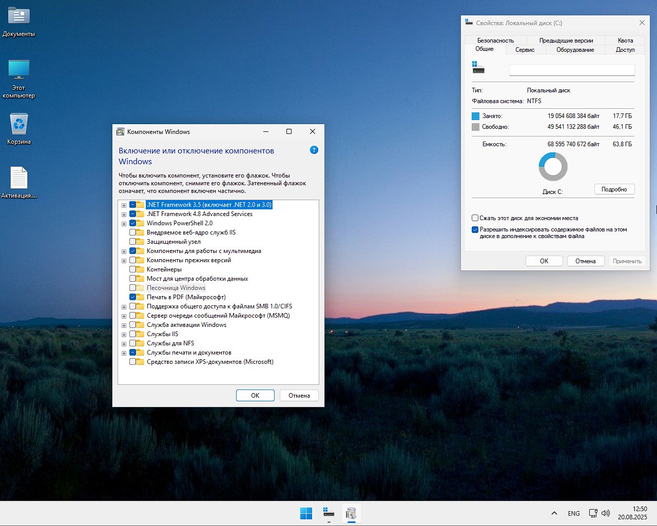 - Интегрирован .NET Framework 3.5 и его более новые версии для запуска старого программного обеспечения