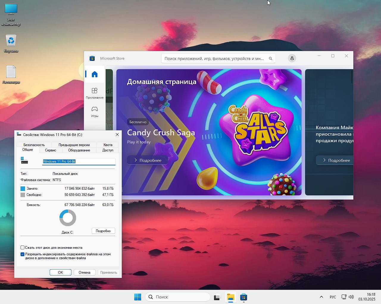 Windows 11 Pro 25H2 Full x64 — стабильная и чистая сборка операционной системы, ориентированная на максимальную производительность и комфорт при работе на ПК. Установка осуществляется с флешки без необходимости подключения к интернету, а системные процессы оптимизированы для быстрого запуска приложений и стабильного функционирования. Это полноценная 64-битная версия Windows, лишённая ненужных компонентов, телеметрии и фонового хлама, подходящая как для игр, так и для серьёзных рабочих задач.