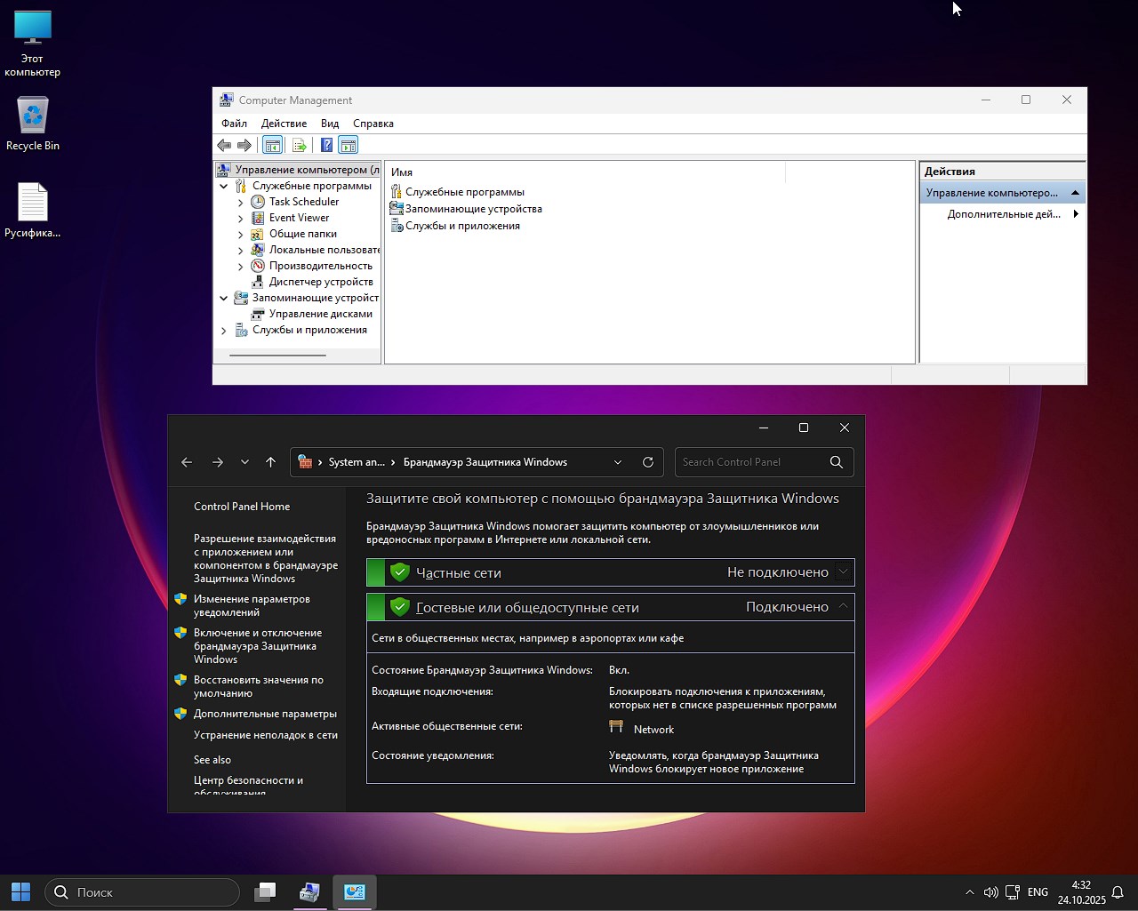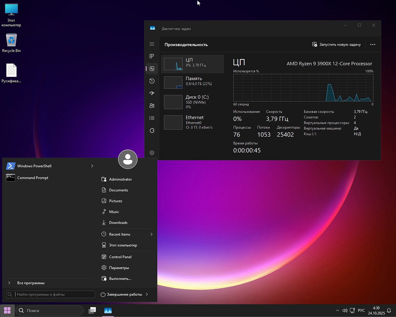 После установки Windows 11 Pro 24H2 Vulcan by Ghost система автоматически запускает скрипт оптимизации, после чего требуется перезагрузка. Пользователю рекомендуется в первую очередь через Ghost Toolbox настроить нужные компоненты, такие как Microsoft Store или другие сервисы, прежде чем вносить прочие изменения. Русификация выполняется с помощью трёх команд в PowerShell, что обеспечивает полную поддержку русского языка. После настройки интерфейса можно устанавливать собственный софт, драйвера и настраивать подключение к интернету. Система поддерживает создание загрузочной флешки через Rufus или UltraISO, а также предлагает встроенный режим обхода проверки оборудования. Обновления устанавливаются вручную, что даёт полный контроль над процессом и предотвращает нежелательные перезагрузки.
