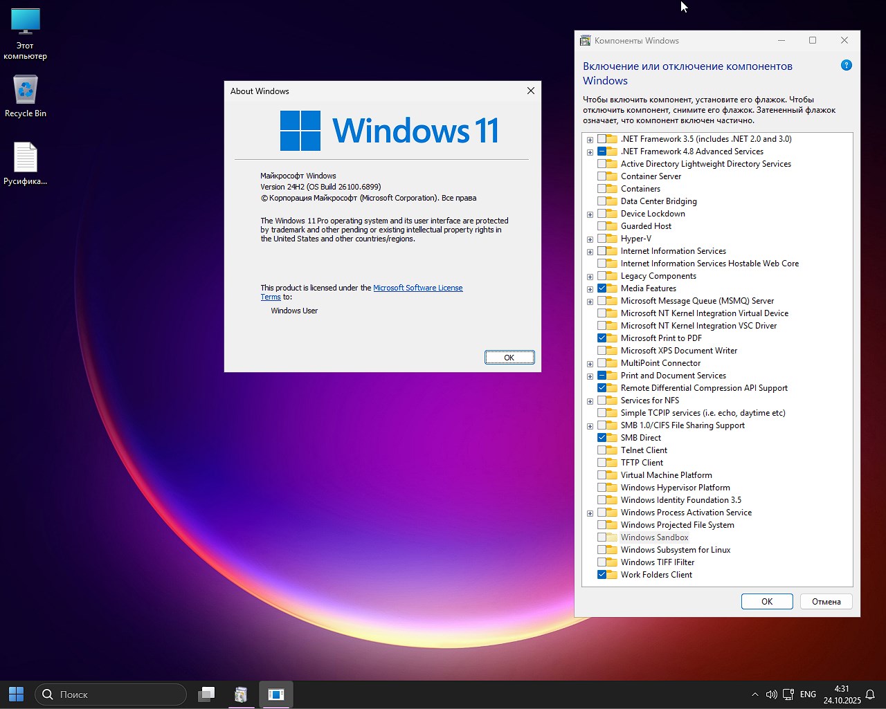 - Для установки не требуется TPM, что позволяет использовать сборку на старых ПК, не проходящих официальные требования Microsoft