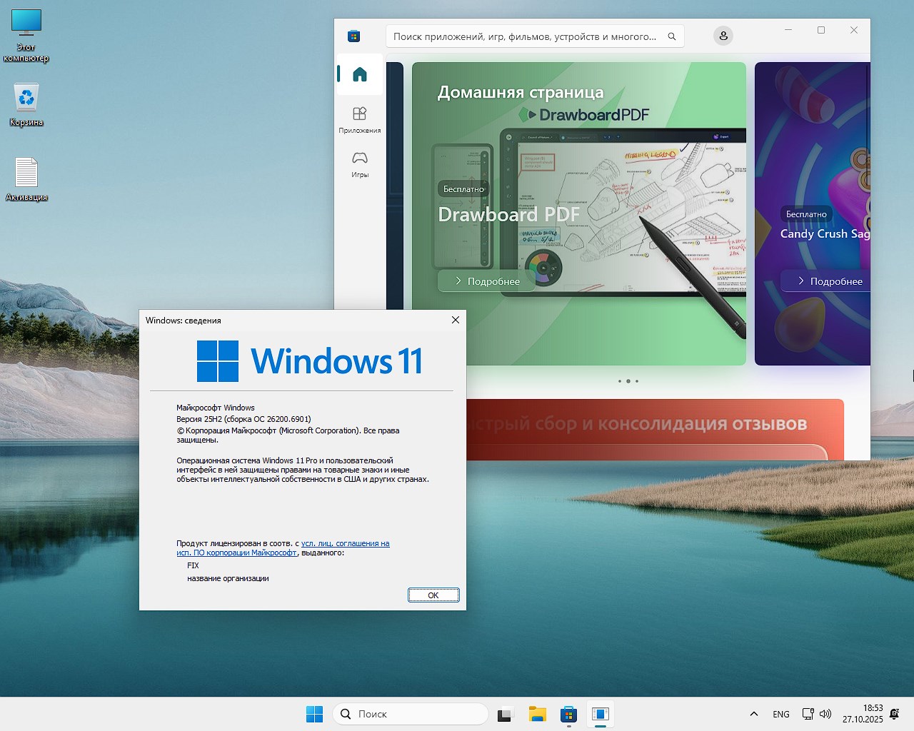 - Версия основана на Windows 11 25H2 с внутренним номером сборки 26200.6901, что делает её одной из самых свежих и стабильных на момент выхода.
