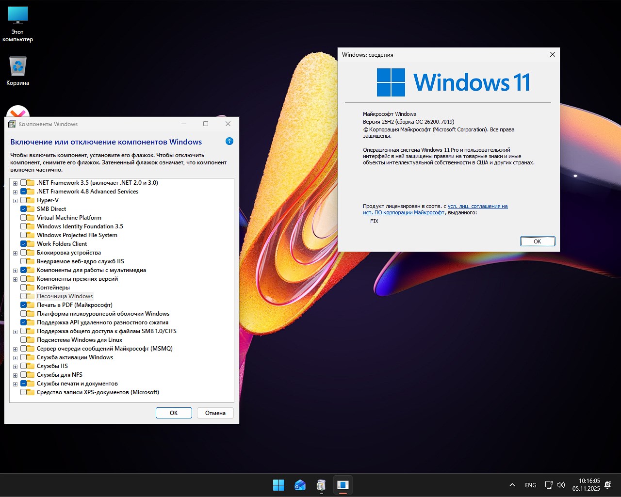 Скачать Windows 11 25H2 x64 без защитника с активацией — Pro 26200.7019 Ru En