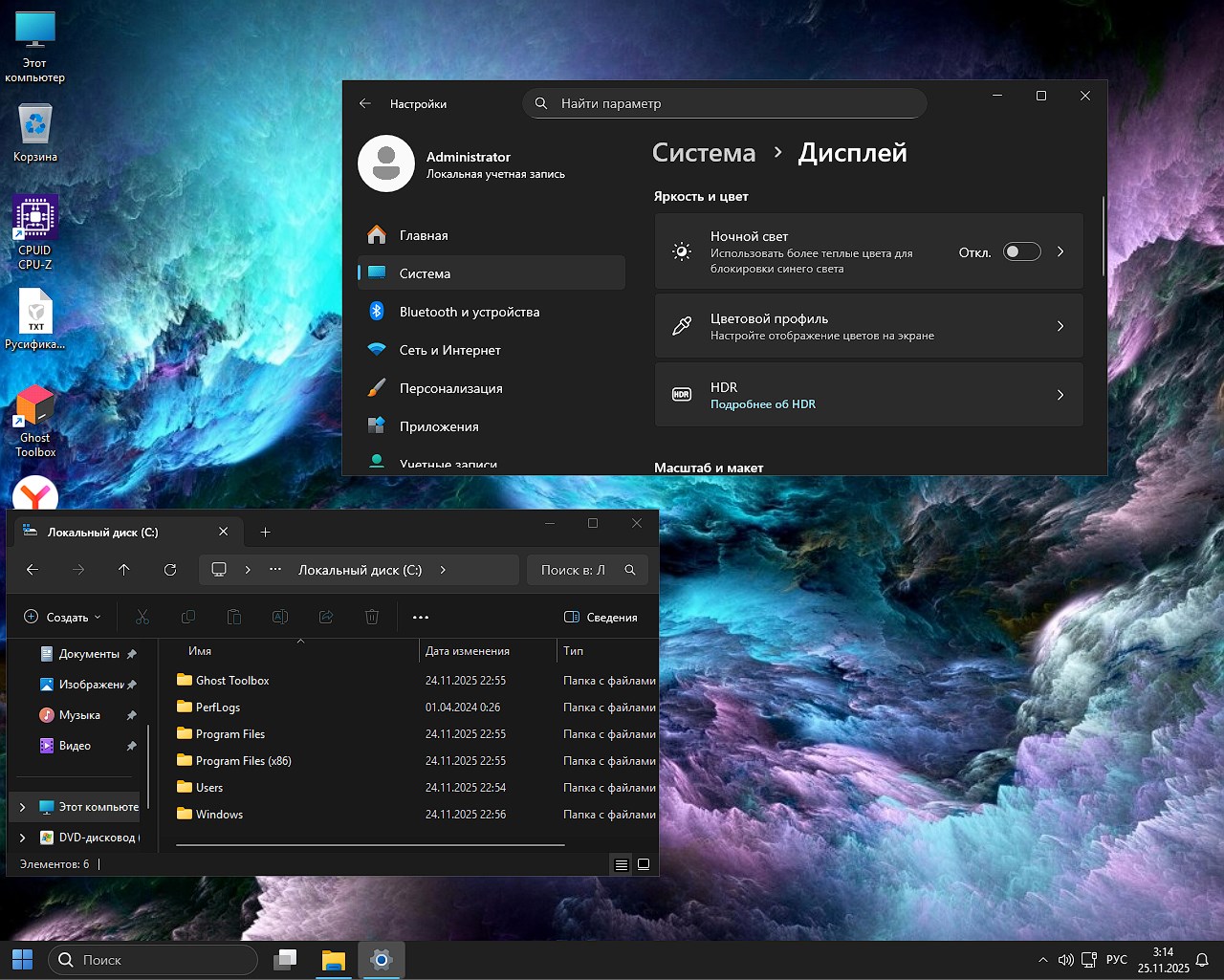 Windows 11 Professional x64 25H2 Update Fix Ghost — это не просто обновлённый образ от Microsoft, а тщательно проработанная модификация, ориентированная на пользователей, ценящих производительность, стабильность и контроль над системой. Основанная на официальном билде 26200.7171, сборка сохраняет все ключевые возможности Windows 11 Pro, но при этом лишена избыточного мусора, включая предустановленные приложения, фоновые службы и элементы телеметрии. Благодаря использованию сжатия LZX, размер образа составляет всего 4.9 ГБ, что упрощает запись на флешку и ускоряет установку. Пользователи получают чистую, гибкую платформу, идеально подходящую как для офисной работы, так и для игр.